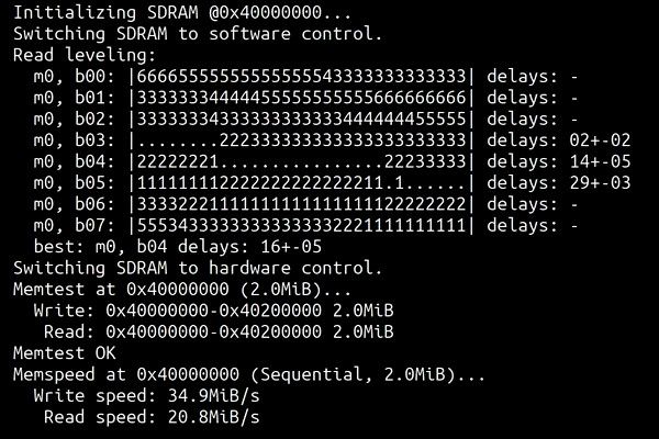 Writing of the work required, Hans explains that "the LiteDRAM BIOS helped me so much to pin down what the issue was, by inserting some debug printf's. Actually the mem_read/mem_write already gave it away, but the SDRAM debug functions in the BIOS were very helpful for me to understand what was happening."