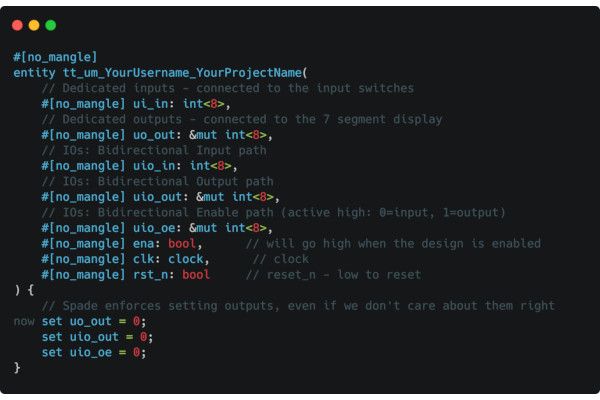 Developer Frans Skarman, creator of the Space hardware description language (HDL), has added support for Matt Venn's Tiny Tapeout to the language, courtesy of a Swim plugin.
