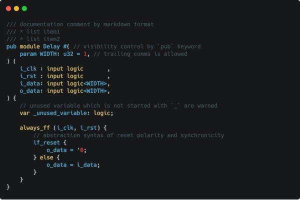 Finally, productivity improvements come from a "rich set of development support tools" including build tools, package managers, and real-time checkers compatible with popular editors from Vim and Emacs to Visual Studio Code (VSCode). "With these features," dalance claims, "Veryl provides powerful support for designers to efficiently and productively conduct high-quality hardware design."